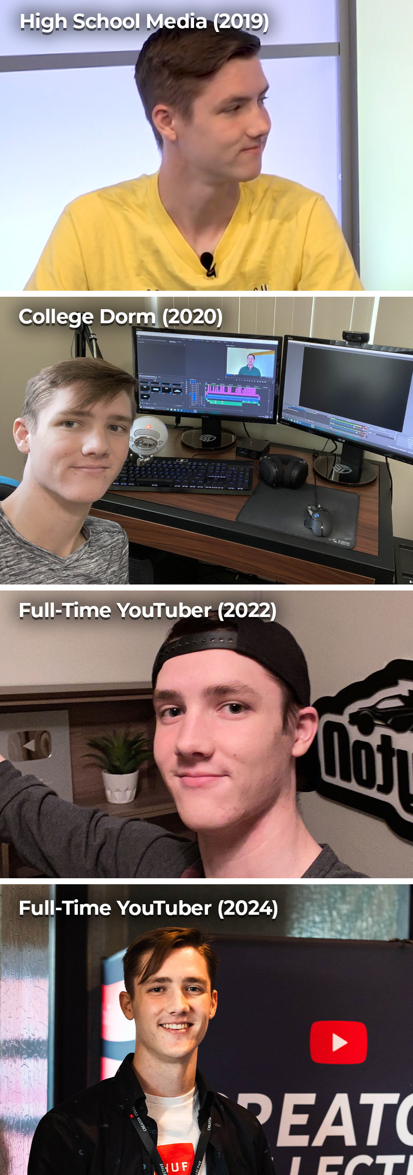 During my early semesters, most of my coursework focused on general studies, rather than in-depth film classes. So to keep creating, I started making YouTube videos in my free time. In December of 2019, my channel unexpectedly took off. Within a week, I grew from a few hundred subscribers to over 20,000, and the momentum continued. As the channel grew, my priorities shifted — college began to feel more like a side pursuit, while YouTube became my primary focus and learning environment.