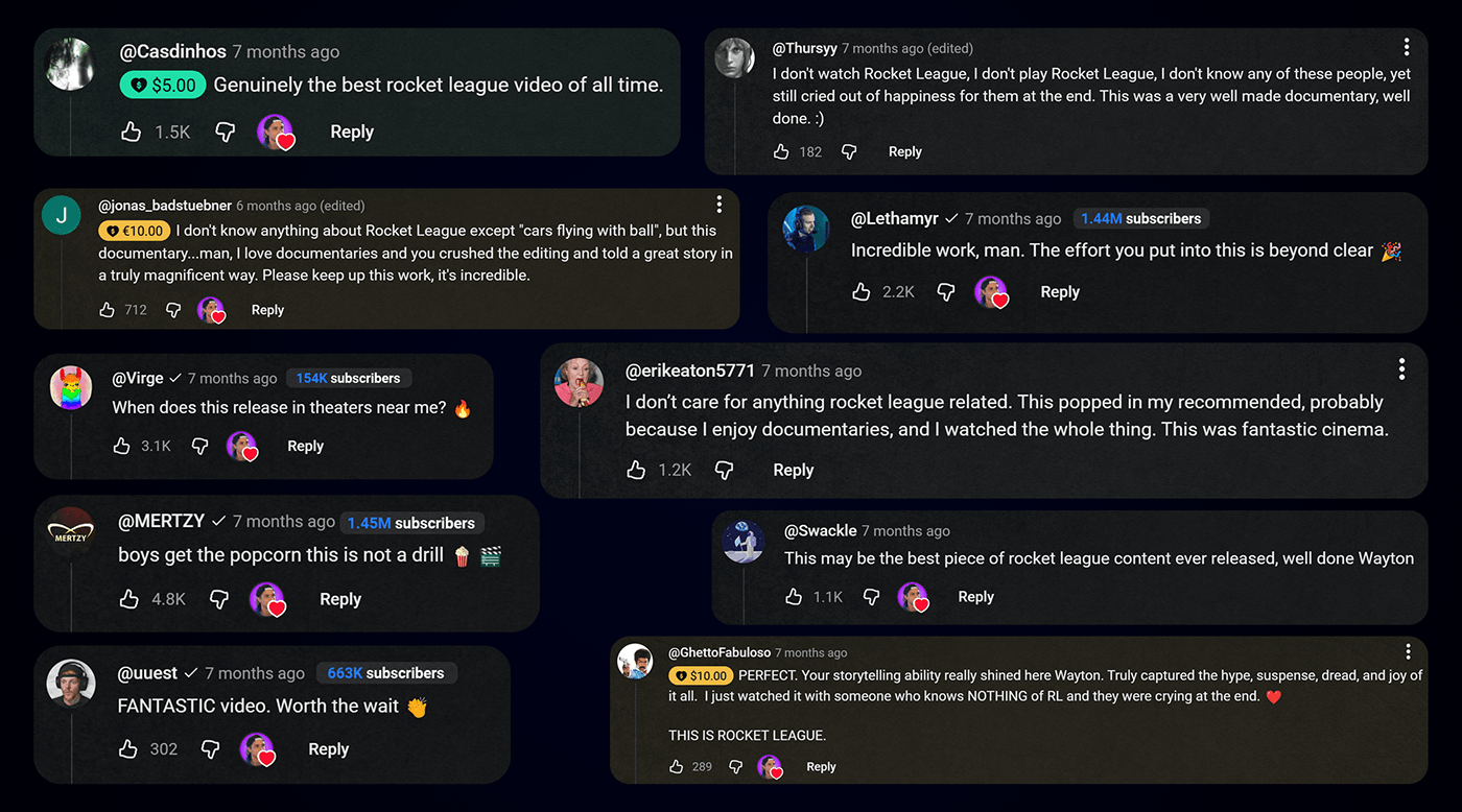 The documentary has received widespread praise from both viewers and fellow content creators: